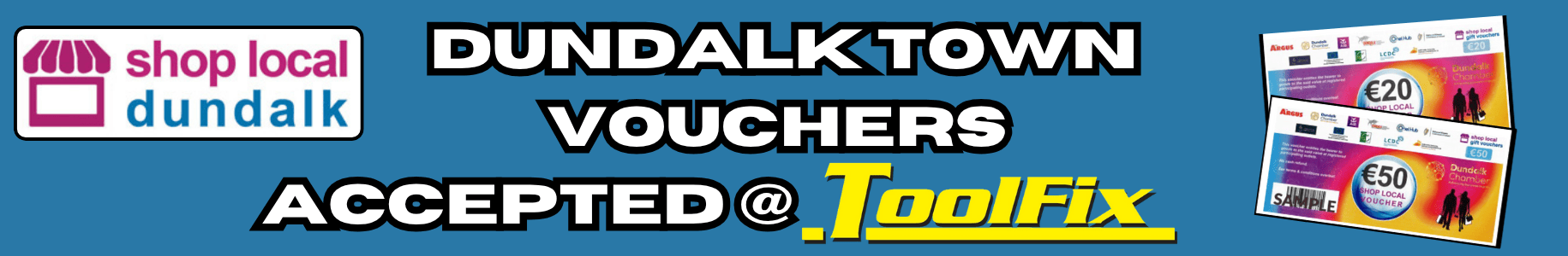 Shop Local Gift Vouchers are pre-paid multi store vouchers that can be used in hundreds of the most popular stores in Dundalk. They are available in denominations of €5, €10, €20, €50.