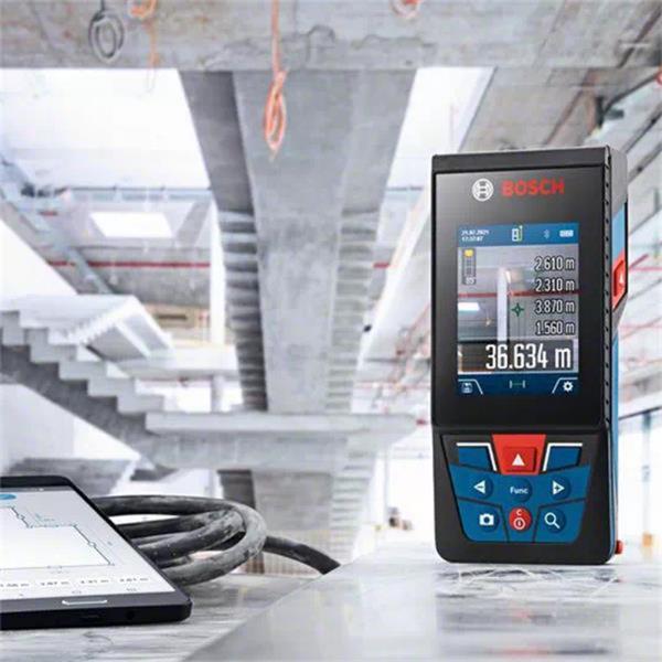 This robust outdoor laser measure has a digital camera viewfinder with a zoom function for accurately measuring distances up to 150 m. Measurements and pictures are automatically saved and easy to read thanks to a large, high-contrast 2.8" IPS colour display that rotates between portrait and landscape view. For convenient documentation, all data can be transferred via Bluetooth to the Bosch MeasureOn App or via USB connection to a PC. With IP54 protection, scratch-resistant display glass, and user-friendly interface, this laser measure is the handy all-rounder for demanding jobsites.