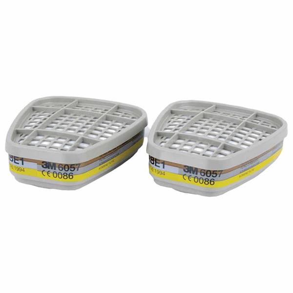 The 3m 6055 (A2) is a filter pack, which is designed for use with the 6000/7500 series half face respirators and 6000/7000 series full face respirators. They provide the user with a high protection from contaminated environments in a wide range of industrial contaminants. With a filter type of A1, it can protect you against organic gases. The bayonet fitting types allows each filter to be clicked in place for ease.The 3M 6057 gas & vapour filter (pair) provides ABE1 breathing protection against organic vapours (boiling point above 65C), inorganic vapours and acid gases. This filter have a brown, grey and yellow band that colour-coded according to the EN14387 classification system to show the type of protection provided. These lightweight filters can be clicked into place quickly and easily, and they can be used with any 3M reusable masks that feature a bayonet-style connection. They offer low breathing resistance and good balance when connected to your mask, and they're designed to optimise your field of vision. The cartridges can also be used in combination with 3M particulate filters (5925, 5935) and the 3M 501 filter retainer. Conforms to EN14387: Gas filters and combined filters, ABE1 (A: organic gases and vapours with a boiling point higher than 65C, B: inorganic gases and vapours, E: sulphur dioxide and other acidic gases and vapours, Class 1: low capacity, up to 1000ppm)