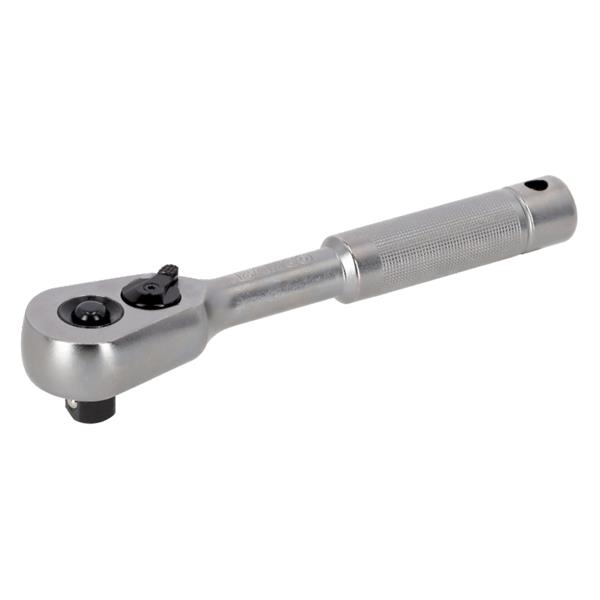 The 8150MH 1/2" Pear Head Reversible Ratchet with Metal Handle is a durable ratchet designed for professional fastening and loosening tasks. Featuring a 60-tooth mechanism with a 6° action angle, quick-release function, and chrome vanadium steel construction, it offers reliable performance, accessibility, and comfortable operation in workshop and industrial environments.