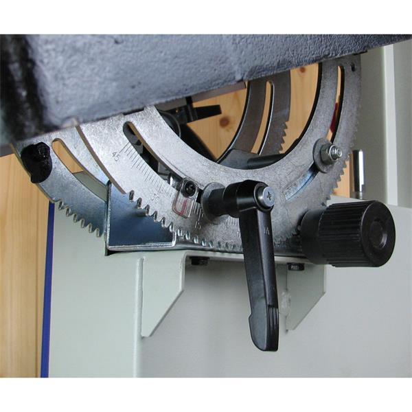 • Tilting cast iron table from 90° to 45° with rack and pinion adjustment and positive stops