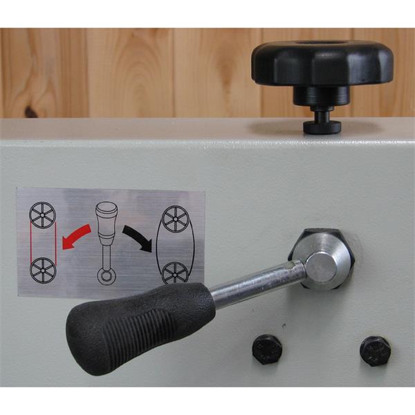 • Two speed pulley system for blade speed selection