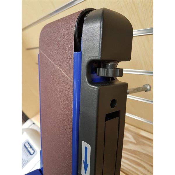 • 4″ x 36″ (100 mm x 914 mm) sanding belt, usable vertically or horizontally