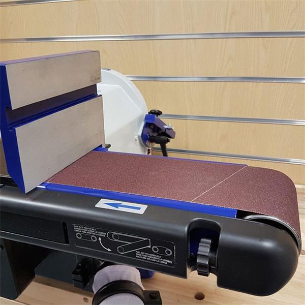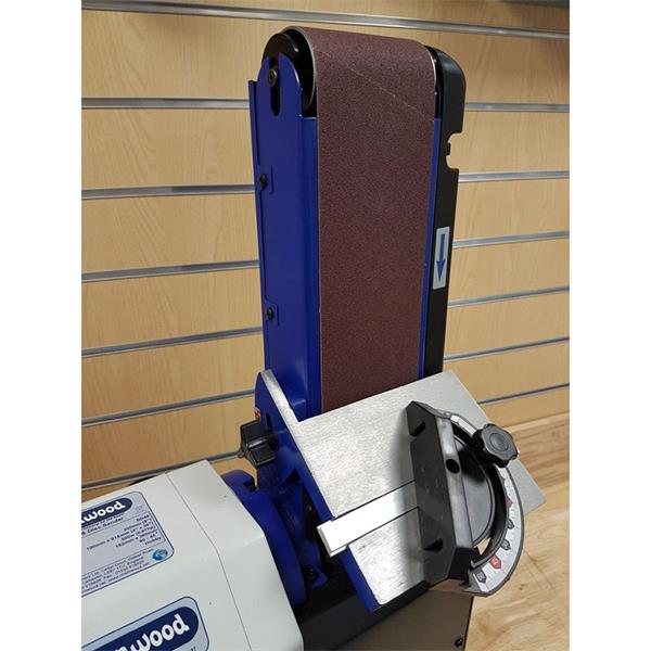 • 4″ x 36″ (100 mm x 914 mm) sanding belt, usable vertically or horizontally