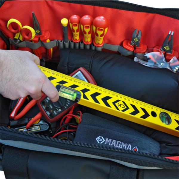 Durable reinforced polyester construction with extra wide opening mouth for easy access. 100% waterproof and crackproof polymer base. Padded handle and shoulder strap for maximum comfort. Long handles so can be carried open. Internal storage area with 22 additional pockets & holders.