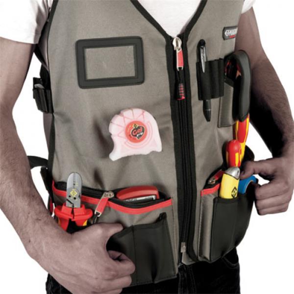 • 14 pockets and holders for tools, equipment, and a mobile phone.