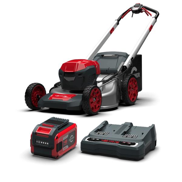 The 48LM48SP is a high performance 48cm/19” battery lawn mower designed for use in medium to large gardens. For versatility the mower offers 3 in 1 functions for collecting grass, mulching, or side discharge depending on the area. Featuring the power of petrol but the convenience of cordless technology.