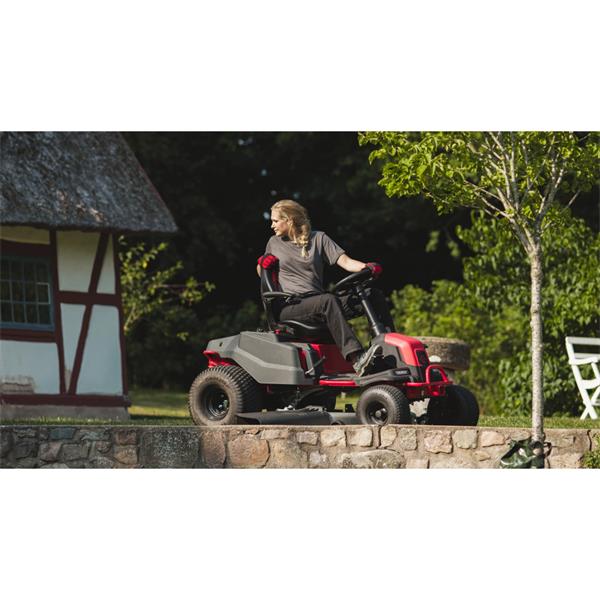 • The 82LT107 is a lawn tractor with professional 82V power designed for those who demand high performance and durability for large gardens and big properties. Featuring a 107cm cutting deck for mulching and optional side discharge functions, the tractor offers exceptional cutting performance thanks to its dual 1.2kW motors and heavy-duty stamped steel cutter deck. Power comes from 4 included 82V 5Ah click-in battery packs, allowing continuous mowing throughout the day to cover up to 10,500m2 on a single charge (with 6 x 8Ah 82V batteries).
