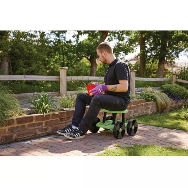 The Draper RCT1 Roller Garden Cart and Seat allows users to sit comfortably while carrying out low-level gardening tasks, reducing strain from bending, kneeling, and crawling. Lightweight and easy to move, it features a durable construction and practical tool storage.