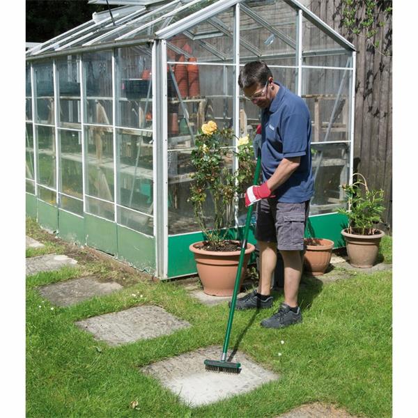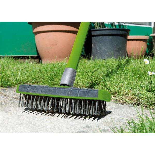 The Draper Twin Head Paving Brush Set with Telescopic Handle is designed for removing stubborn weeds, moss, and dirt from paving slabs, patios, driveways, and decking. The twin-head design provides both a wire brush for tough scraping and a narrow brush with an integral steel blade for cleaning joints and gaps. Its lightweight telescopic handle allows the user to adjust the length for comfortable use, reducing strain during extended cleaning tasks.