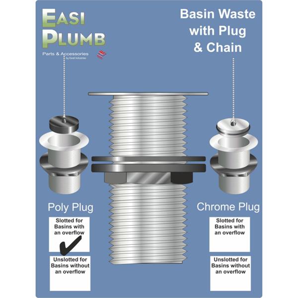 Easiplumb 11/4" Slotted Basin Waste, Poly Plug & Chain