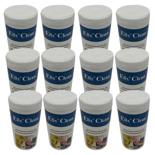 • 12 × Packs of 100 Elix Disinfectant Cleaning Wipes