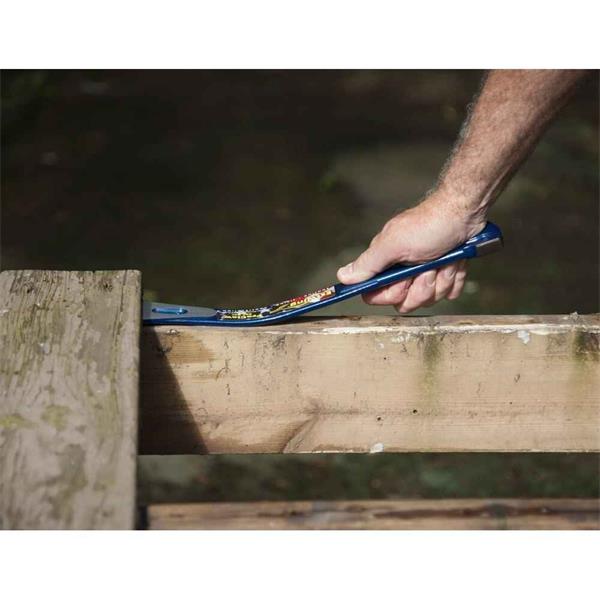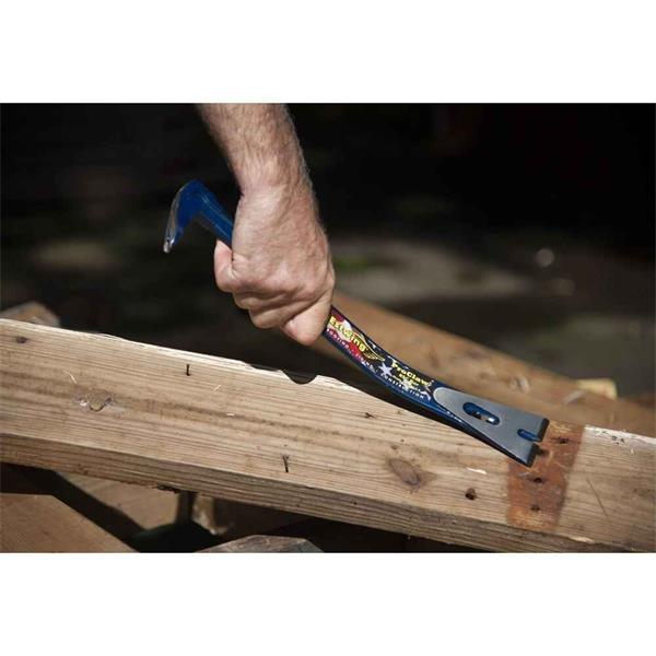 - Two-in-one design: pry bar and nail puller