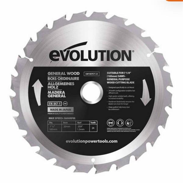 • 1 x Evolution GW185TCT-24 185mm General Wood Blade