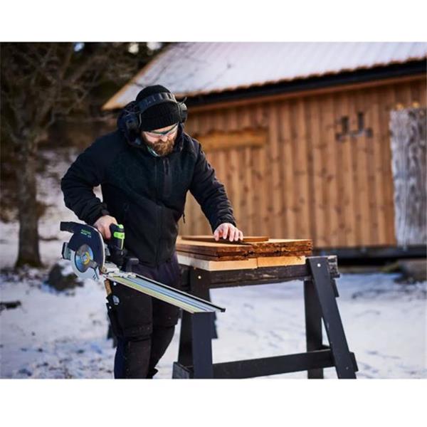 Whether you're on the roof or down on the ground – with the Cordless circular saw HKC 55 K, you’ve got the power and flexibility you need. Speedy cross-cuts with the cross-cutting guide rail FSK, precise cuts with the guide rail FS, and accurate angled cuts: the HKC 55 K delivers serious power and versatility for your everyday tasks. Features like the clever KickbackStop, the pendulum hood remote control, the guide wedge, and the spring-assisted plunge-cut function make for top-notch working conditions – safe and comfy. You can always count on maximum power: the HKC 55 K makes the most of the super-powerful 8.0 Ah Battery pack. The specially designed thin-cut saw blades have a cutting width of 1.6 mm and are perfect for this circular saw. Together, you'll not only enjoy amazing cutting performance, but also a longer battery life – for the best performance on every project.