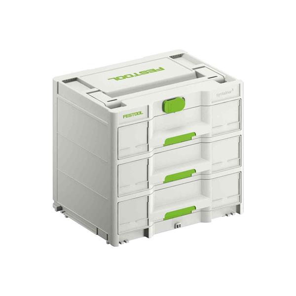 The Festool Sortainer³ SYS3-SORT/3 M 337 (577769) is a versatile and durable storage solution designed to organize small parts and hand tools efficiently. Featuring three spacious drawers, this Systainer is compatible with all Festool Systainer generations, mobile dust extractors, and many other system accessories. Its modular design allows for seamless integration into the Systainer system, enhancing mobility and accessibility in your workshop or on the go.