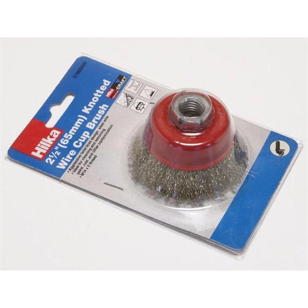 The Hilka 2½" Brassed Steel Crimp Brush is designed for efficient removal of paint, rust, and surface debris. Its 12.5mm (2½") diameter and M14 x 2 thread make it compatible with most angle grinders. The brassed steel wire construction ensures durability and effective cleaning performance.