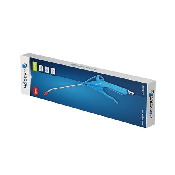 The Hogert HT4R751 Air Blow Gun (200mm) is a pneumatic cleaning tool designed for precision air blowing in tight or hard-to-reach areas. It features a long 200mm nozzle that delivers controlled airflow for removing dust, debris, and contaminants from machinery, components, and work surfaces in workshop and industrial environments.