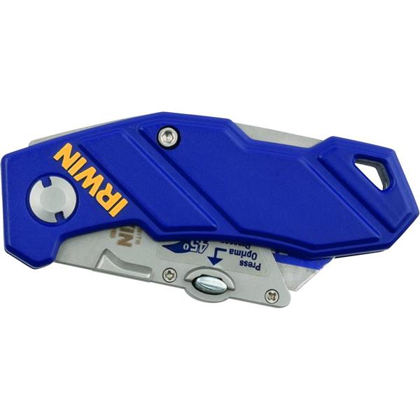he Irwin IRW10507695 Folding Trapezoid Knife has a quick change mechanism that allows for easy blade removal and reversal without opening, also has a built in wire cutter for convenience. Has a compact design that is lightweight and durable with an extended thumb ledge that is made from stainless steel, to provide better handling.