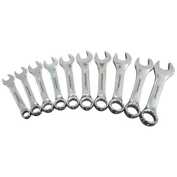 The Jefferson 10 Piece Stubby Spanner Set offers durable chrome vanadium steel construction with a compact design for access in confined spaces. Includes 10mm to 19mm sizes, ideal for professional and home use. Polished finish for corrosion resistance and easy cleaning.