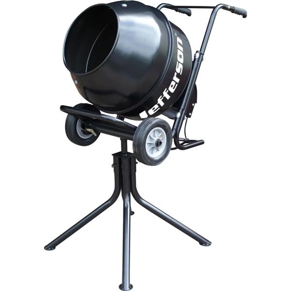The Jefferson JEFCEM1240 is a 230V electric cement mixer designed for both professional and DIY use. It features a 130-litre drum capacity, suitable for mixing larger batches of concrete, mortar, or plaster. The mixer is equipped with a 0.5HP single-phase motor, providing reliable power for consistent mixing. Its all-steel construction ensures durability, while the four-legged stand offers stability during operation. The tilt-and-turn mechanism allows for easy unloading and cleaning