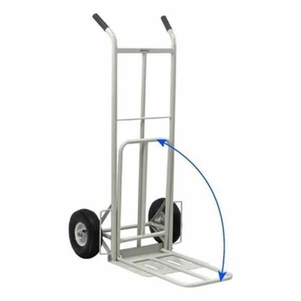 This trolley features a sturdy epoxy-painted steel frame capable of supporting up to 200 kg (about 441 lbs). Its twin handle design allows for better control and maneuverability, making it ideal for carrying bulky or heavy items across different terrains. The trolley has a foldable toe plate for increased maneuverability and ease of storage. It is equipped with inflatable wheels measuring approximately 265mm, suitable for uneven surfaces, enhancing stability and ease of movement.