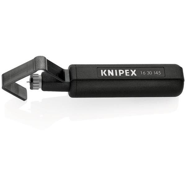The Knipex 16 30 135 SB Dismantling Tool is a precision hand tool designed for stripping the sheaths of round cables made of PVC, rubber, silicone, or PTFE. With a compact length of 135 mm, it allows careful handling of cable insulation without damaging the inner conductors.