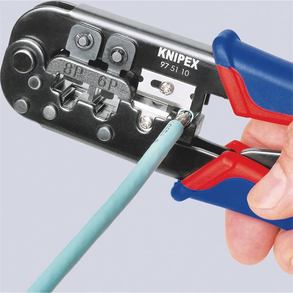 Knipex 97 51 10 SB Crimping Pliers For Western Plugs With Multi-Component Grips 190mm
