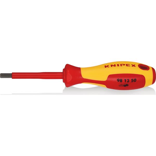 The Knipex Screwdriver for Hexagon Socket Screws is designed for precise and efficient tightening or loosening of hex screws. Its ergonomic handle provides a secure grip and optimal torque transmission, making it suitable for professional electricians, technicians, and maintenance engineers.