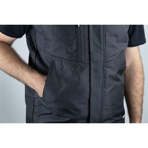 LMA Cratere Two Tone Bodywarmer - Night Grey / Black is a durable and functional workwear vest designed for demanding environments. Made from a tough cotton-polyester blend with reinforced Oxford panels, it offers wind protection, practical storage, and a comfortable fit with elastic sides and an extended back. Ideal for professionals needing warmth, mobility, and durability on the job.