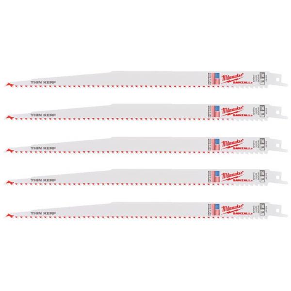 Milwaukee 48475037 300mm x 5 TPI Sawzall Thin Kerf Sabre Blades (5 Pack)