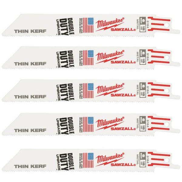Milwaukee 48475184 150mm x 18tpi Metal Thin Kerf Sawzall Blades (5 Pack)