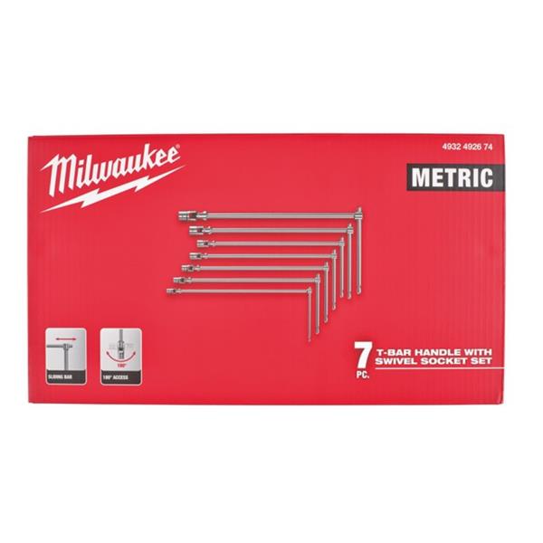 Milwaukee 4932492674 T-bar Handle With Swivel Socket Set - 7 pc