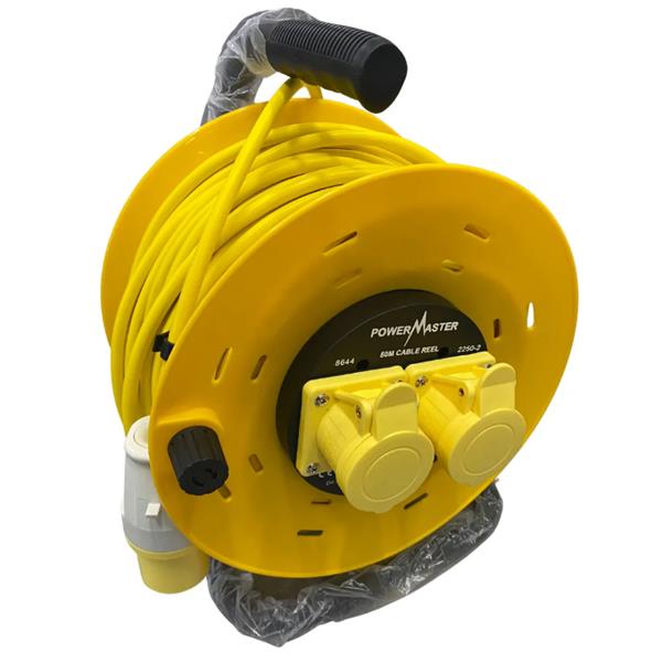 • 2 Gang open type reel with 50 metres of 1.25 yellow flex and a 110v plug top connected