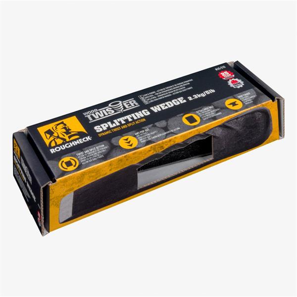 The Roughneck ROU65510 Wood Twister® Splitting Wedge is drop-forged, hardened and tempered. This is a dynamic wood wedge which twists as it enters the log and splits the log into 2 pieces.