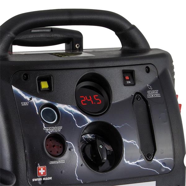 For added versatility, the 6400 has an integrated 12v DC portable power supply perfect for charging electronic devices direct from the booster.