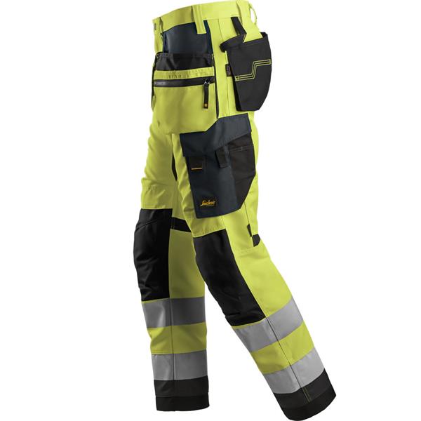 Snickers 6230 6658 Hi-Vis Trousers Holster Pockets+ CL2 Yellow/Steel Grey
