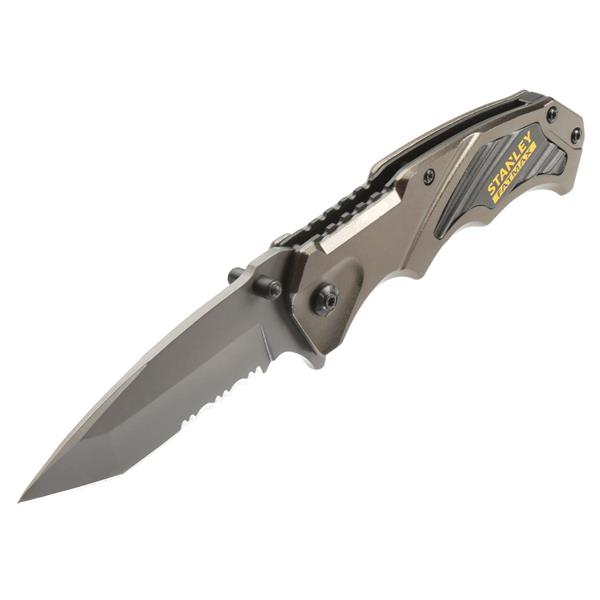 The Stanley Tools FatMax Pocket Knife has a heavy-duty design with a stainless steel combination blade with both serrated and straight edges for cutting various materials. It also provides increased durability and corrosion resistance.