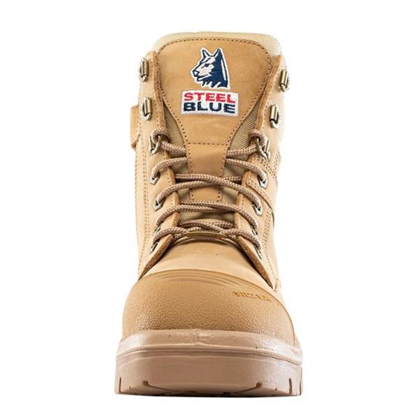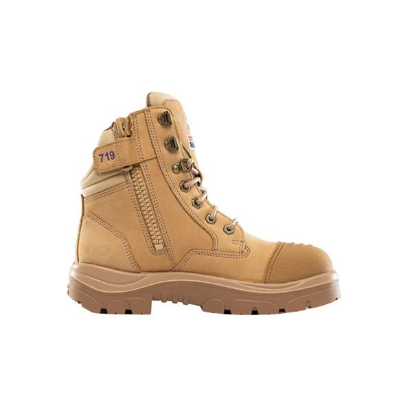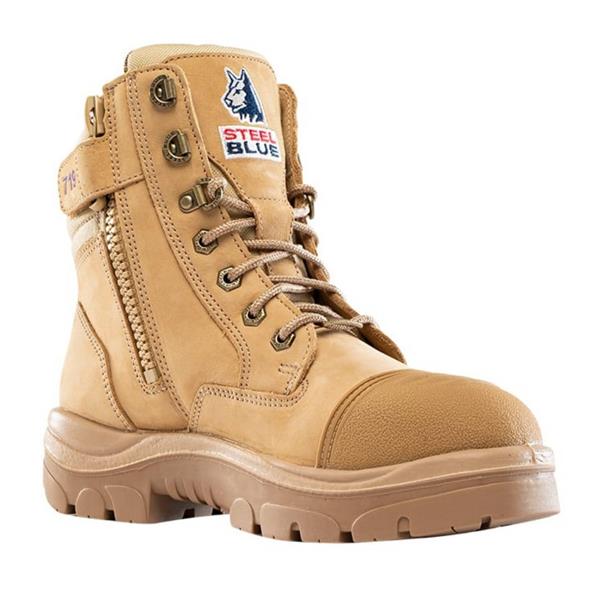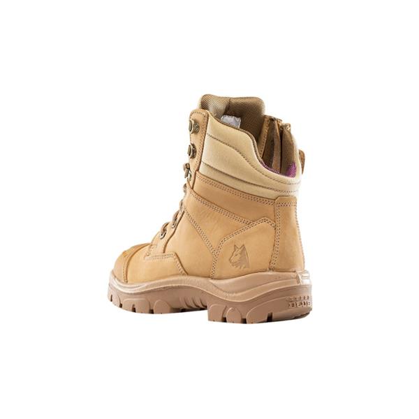 Steel Blue Southern Cross Ladies Zip Scuff Cap S3 – Sand is a 150mm high, zip-sided ankle safety boot specifically designed for women. Constructed from premium sand-coloured nubuck leather, it features a padded, scalloped collar for comfort and a streamlined toe scuff cap for prolonged durability. It combines efficient safety components with ease of access, tailored fit, and industry-leading all-day comfort.