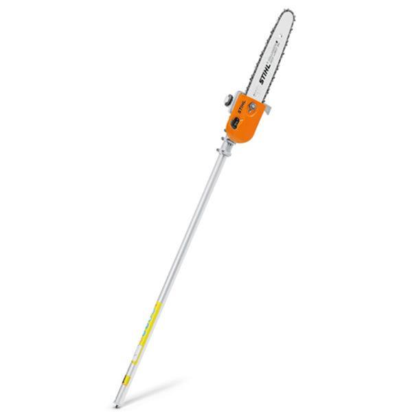 When branches and shrubs need to go, slide the HT-KM pole pruner attachment onto your Stihl KombiMotor. This Stihl KombiSystem attachment features a side-access chain tensioner for easy chain adjustments. The oil tank cap features a retainer, so it stays put during refilling. The HT-KM attachment comes with a 12” bar and chain.