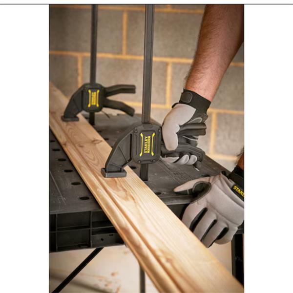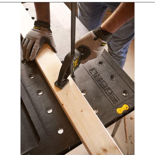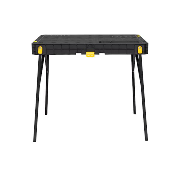 The Stanley's Fold-Up Workbench is ideal for tradespeople who require a versatile, portable working surface with substantial material holding capacity. The worktop provides full clamping coverage, enabling clamps to be used in all positions and for all applications. Features a space saving, folding worktop for compact storage on site, or in any garage or workshop. Integral accessories tray for safely and conveniently storing hand tools, small parts and accessories while not in use.
