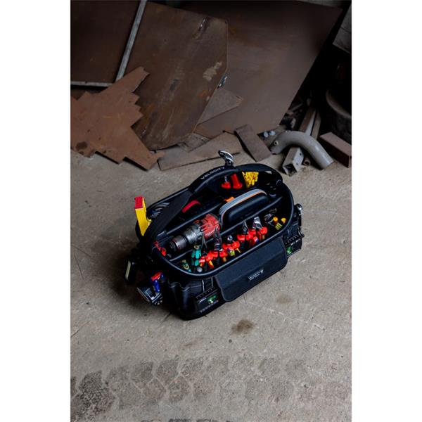 The Velocity Pro Gear Rogue 30XL is a larger, open tote tool bag from Velocity's redesigned 30 Series. Designed for professionals needing extra carrying capacity, it combines spacious organisation, vertical tool storage, and a removable molded tub for versatile tool management, while a thermoformed EVA back panel adds comfort for extended use.