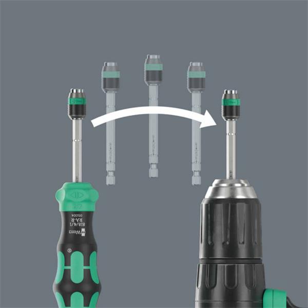 The Wera 05051514001 20 RA-R Kraftform Kompakt Bit Holder Set (6 Pieces) is a compact, high-performance solution designed for precision and speed. It features a two-component Kraftform handle with an integrated fine-toothed ratchet for smooth and efficient operation, along with an intuitive ring switch for easy direction control and a lockable 0-position for manual tasks. The telescopic blade retracts for tight spaces and can be fully extended or removed for use as a machine adapter. Equipped with Rapidaptor technology, the magnetic bit holder allows fast, tool-free bit changes. This set includes six durable BiTorsion bits and comes neatly stored in a robust textile pouch, making it ideal for professionals on the go.